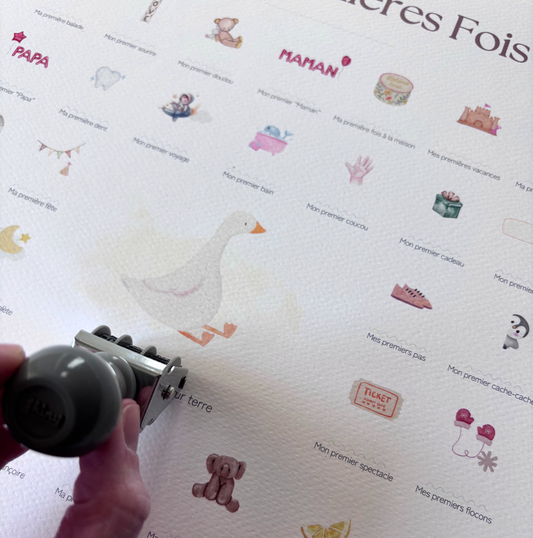 Toutes nos affiches 'Mes Premières Fois' à tamponner de la date de leurs petites et grandes premières fois.